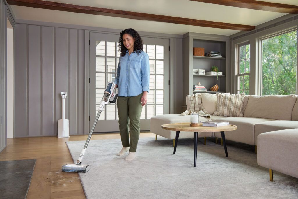 Ова бежична правосмукалка е 30% полесен и лесно се движи по сите површини во вашиот дом. Има отстранлива рачна правосмукалка за чистење мебел и тешко достапни места, додека четката со функција за само-чистење автоматски се прилагодува на сите видови подови – за темелно и едноставно чистење.