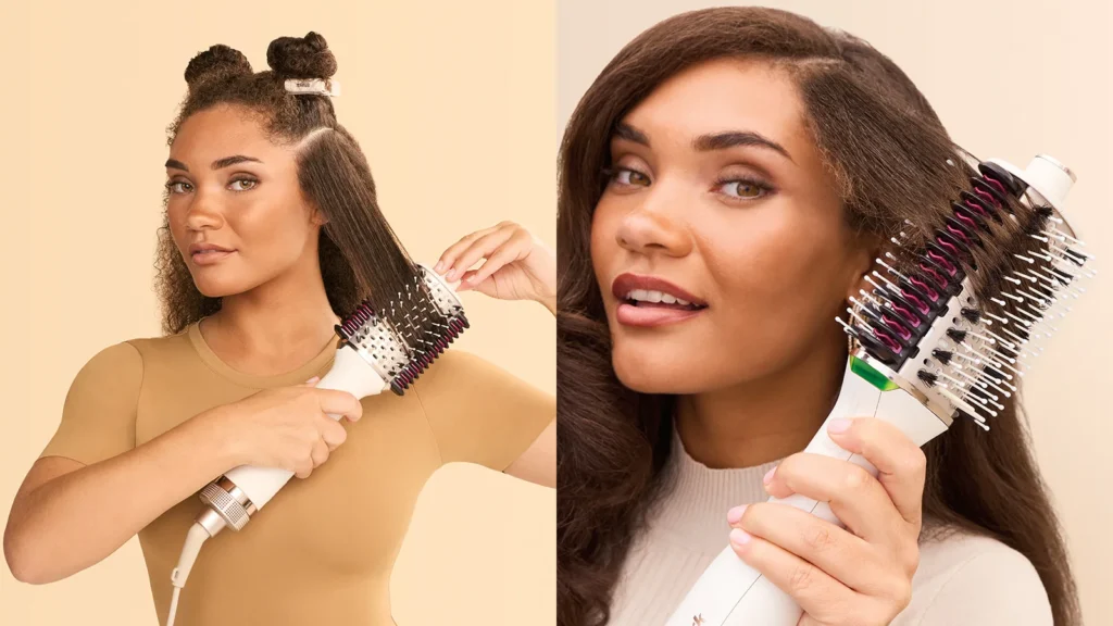 Shark SmoothStyle ја суши и стилизира влажната коса - без оштетување од топлина. Во Wet Hair режимот температурата никогаш не достигнува нивоа што би можеле да ја оштетат вашата коса. Два вида четки - природни (свинско) и најлонски - истовремено ја сушат, ја подигнуваат и обликуваат косата, давајќи ѝ сјај и волумен уште за време на сушењето.