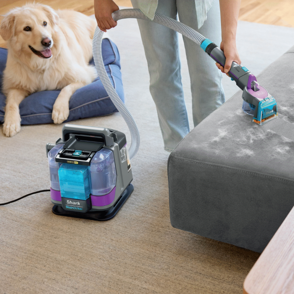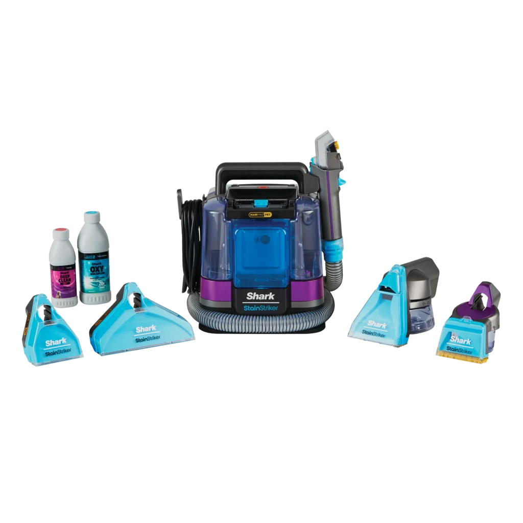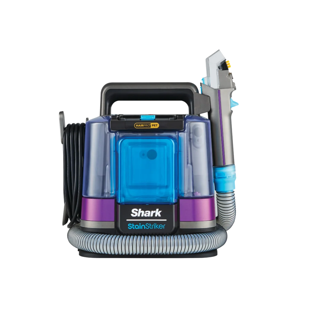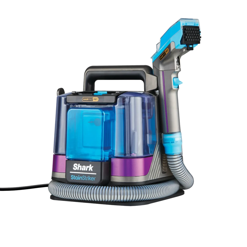 Единствениот чистач за флеки со технологија HairPro Pet. Моќното вшмукување на Shark лесно ги отстранува влакната и крзното од подови и мебел, кревети за миленици, во автомобилот и од нивното омилено место на софата. Shark StainStriker HairPro Pet е дизајниран да се справува со влакна. Технологијата против затнување, создавање грутки и заплеткување го одржува чист, лесен за одржување и осигурува дека нема да останат грутки од мокри влакна.
