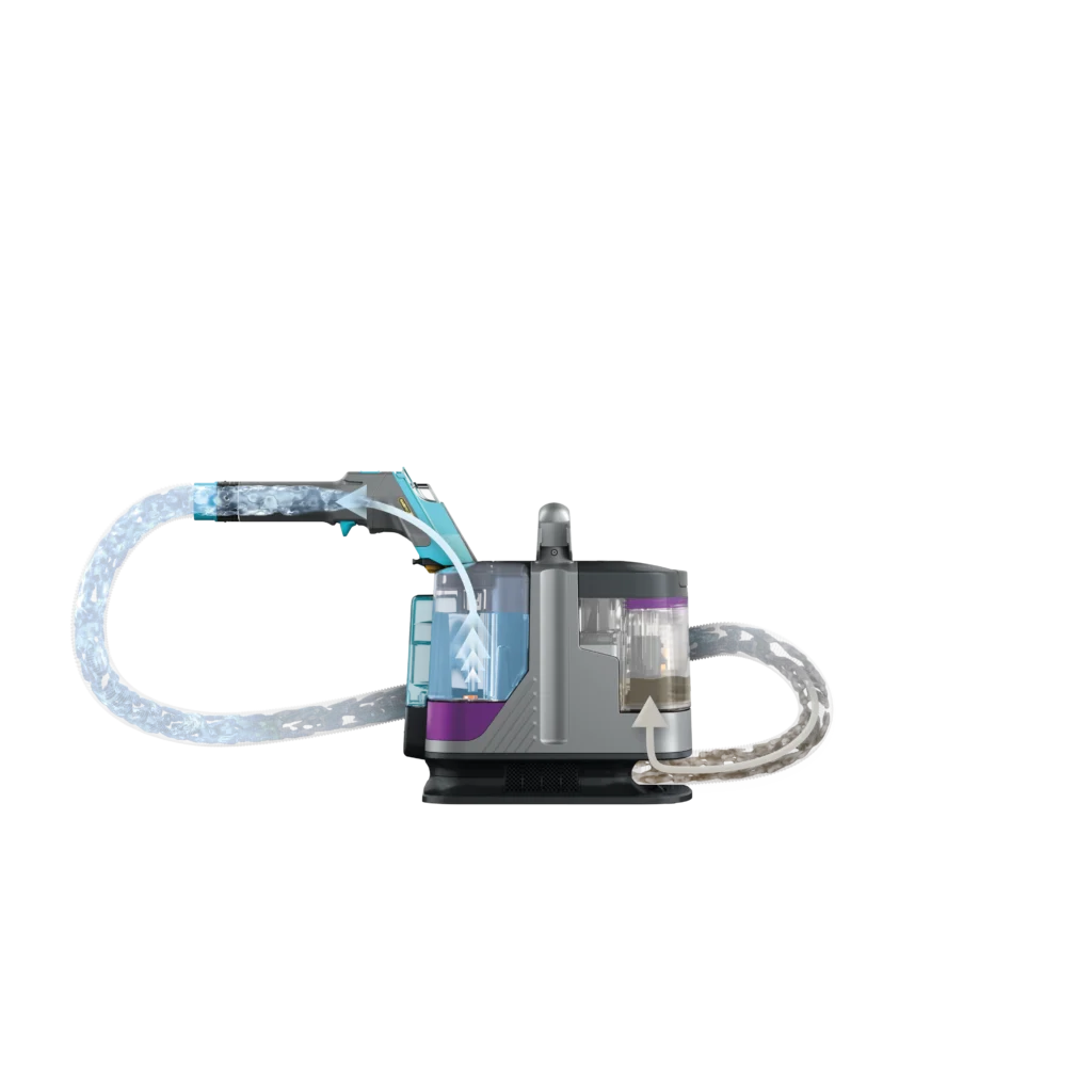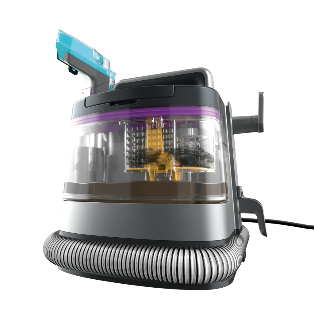 Исчистете ги и најтврдокорните нечистотии, без грижи. Дизајниран за сопственици на миленици, овој моќен чистач испорачува 20x поголема моќ за разбивање на флеки за моментално елиминирање на тврдокорните дамки и мириси. Со 3x поефикасно отстранување на влакна, неговиот иновативен дизајн спречува создавање грутки, затнување и заплеткување – правејќи го чистењето побрзо и полесно. Уживајте во длабокото и моќно вшмукување кое ги извлекува нечистотиите и течностите за резултати со брзо сушење, оставајќи го вашиот дом посвеж за миг. Совршен е за чистење на флеки од теписи, килими, тапациран мебел, скали и ентериери на автомобили. Ова е вашето идеално решение за почист дом, пријателски настроен кон милениците.